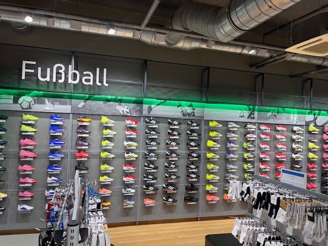 Durch die neue Fläche konnte das gesamte Sortiment weiter ausgebaut werden. Besonders die Bereiche Outdoor, Fußball und Teamsport sowie Running profitieren von der vergrößerten Präsentationsfläche. Auch Fitness, Bade- und Schwimmsport, Wintersport, Sportstyle, Darts, Racketsport wie Tischtennis und Badminton sowie das Sortiment für Kinder haben nun mehr Raum. Neben allen großen Sportmarken bietet der Store auch die exklusiven Eigenmarken der INTERSPORT-Gruppe und stärkt damit das Profil eines modernen Sportfachhändlers mit breiter Markenkompetenz.